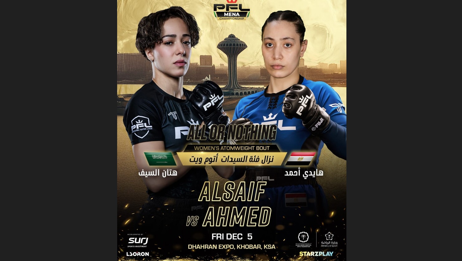 وتواجه السيف في هذا النزال المرتقب المقاتلة المصرية هايدي أحمد، في مواجهة تحمل طابعاً خاصاً كونها أول ظهور رسمي لها على المستوى الاحترافي بعد مسيرة ناجحة في منافسات الهواة.