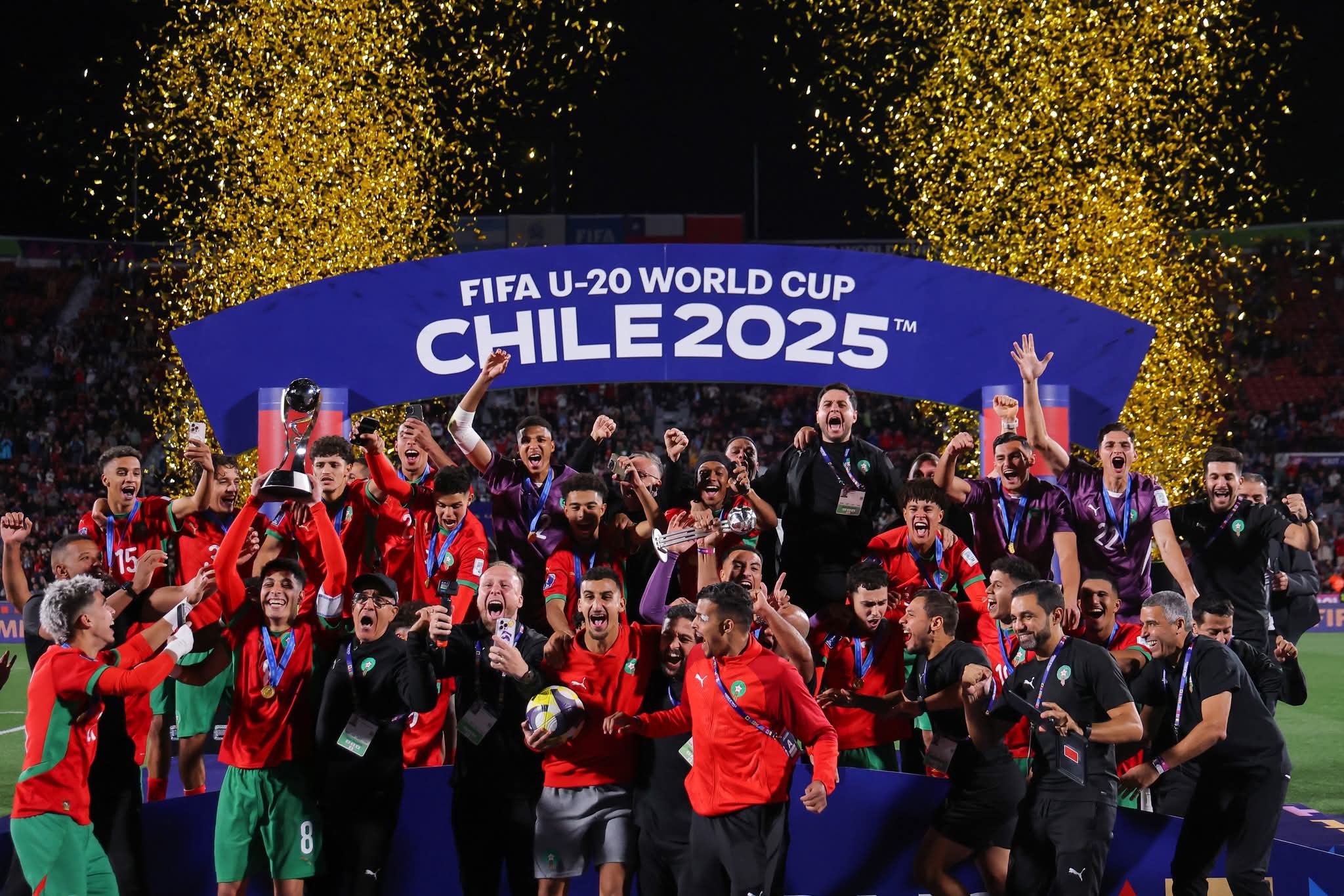 تعلن وزارة القصور الملكية والتشريفات والأوسمة أنه بتعليمات من صاحب الجلالة الملك محمد السادس نصره الله وأيده، سيخصص يوم غد الأربعاء 22 أكتوبر 2025 ، للمنتخب الوطني لكرة القدم لأقل من 20 سنة ، بطل كأس العالم لهذه الفئة، التي احتضنتها الشيلي، استقبال يليق بأبطال هذا الإنجاز الرياضي التاريخي غير المسبوق.